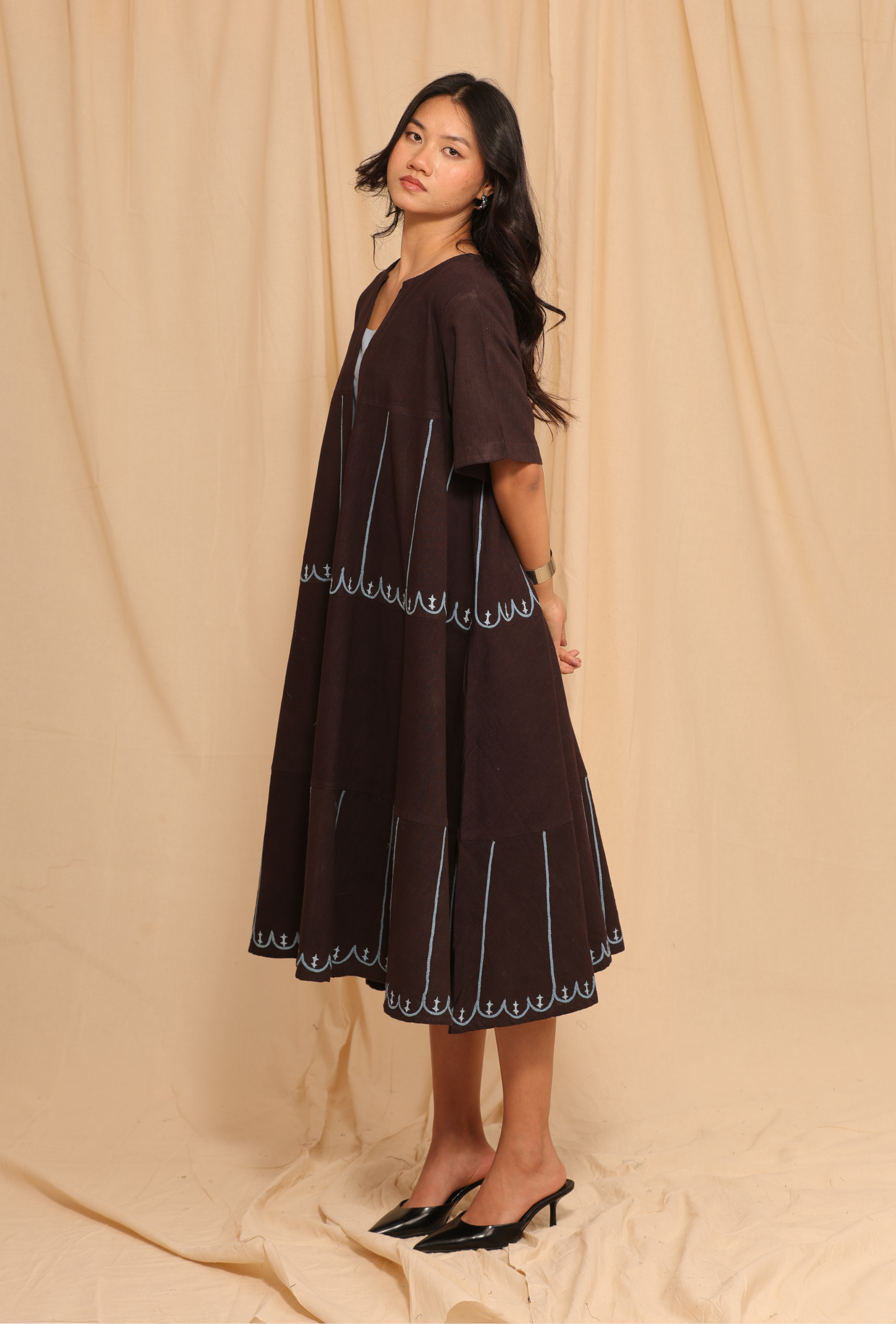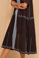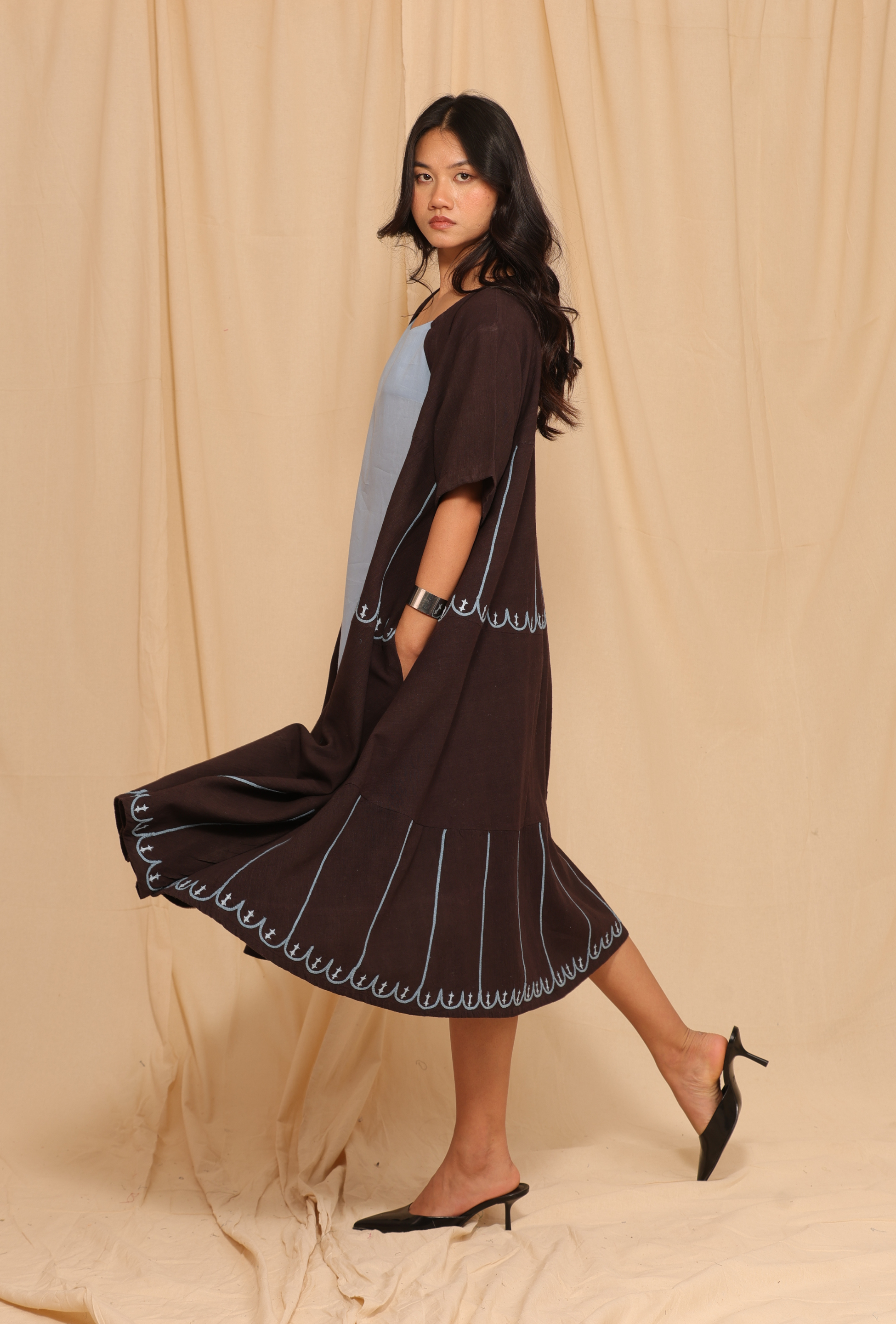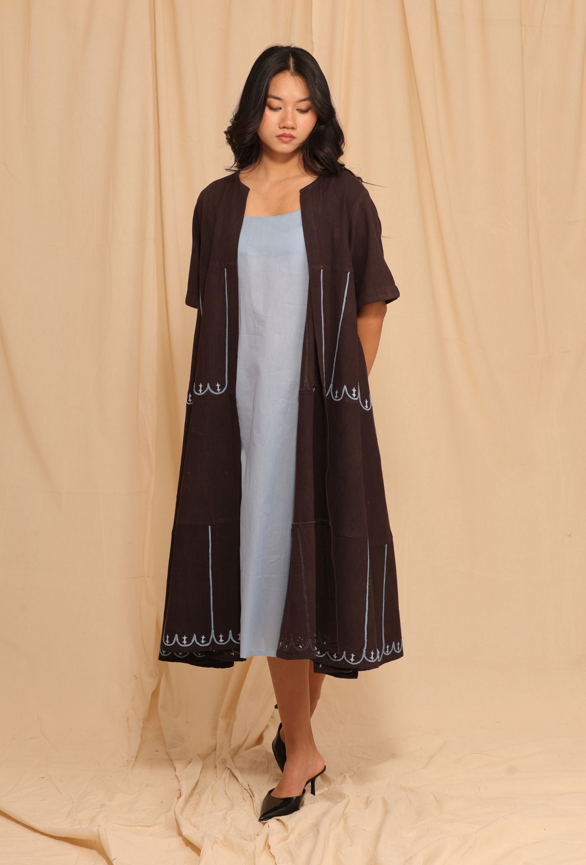 Crafted in soft, breathable Kala cotton, the Black Bella Shrug is an ode to artisanal elegance. Featuring delicate katab embroidery in soft blue strokes, the shrug flows with ease and grace. Its relaxed silhouette and open-front design make it a versatile layering piece, perfect for conscious wardrobes that embrace both comfort and craft.